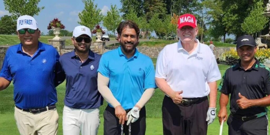 Former India captain MS Dhoni played golf with former USA President Donald Trump, a day after watching Carlos Alcaraz’s quarter-final clash against Alexander Zverev in the ongoing US Open 2023.